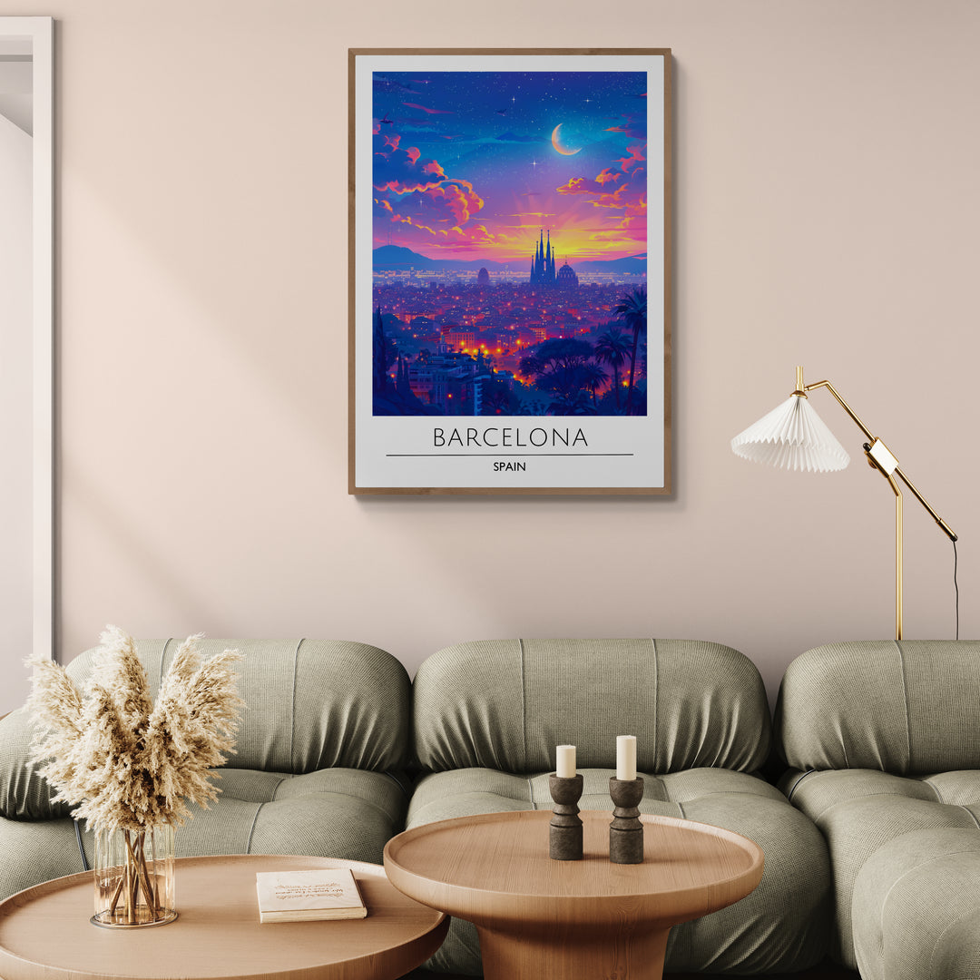 Affiche décorative Barcelone la nuit
