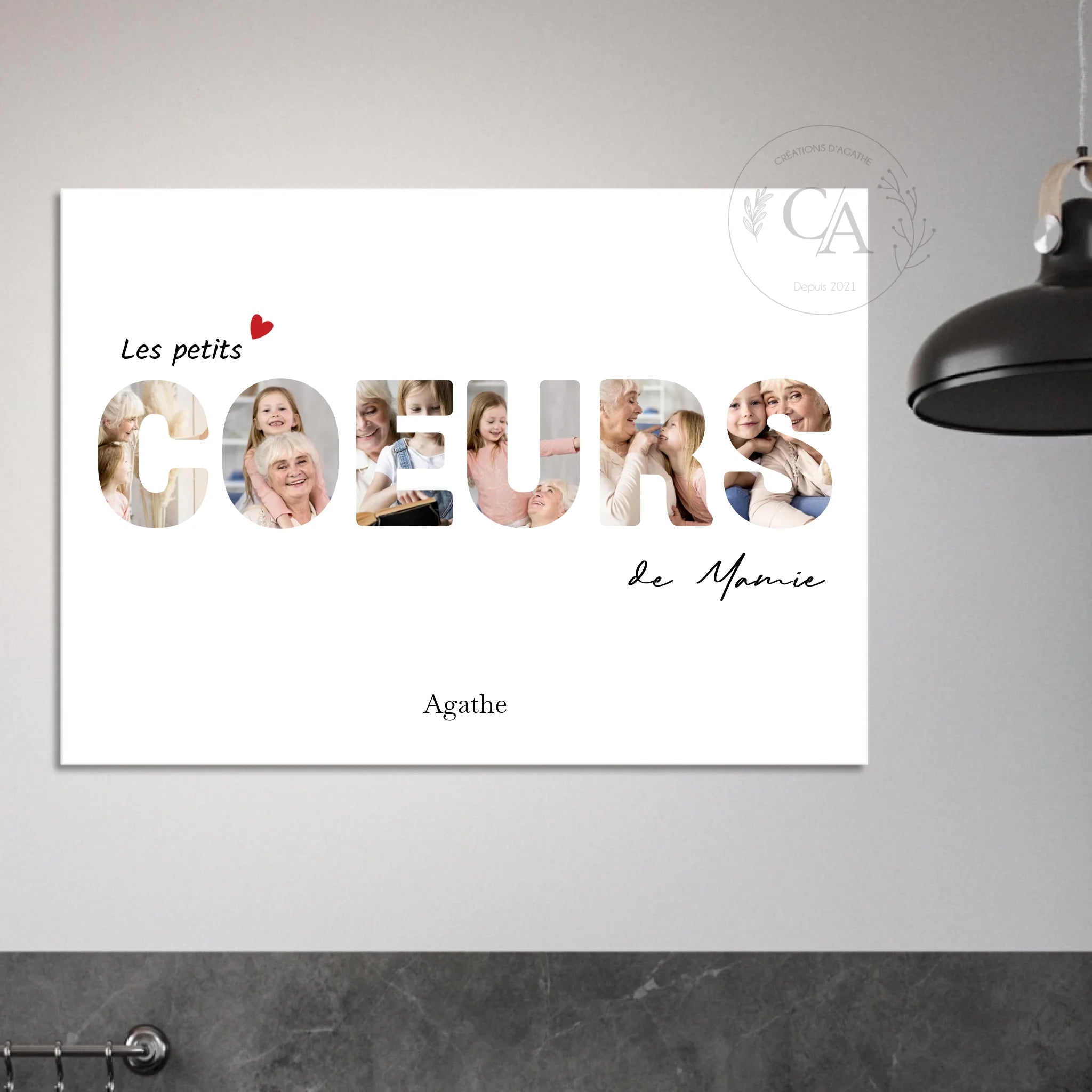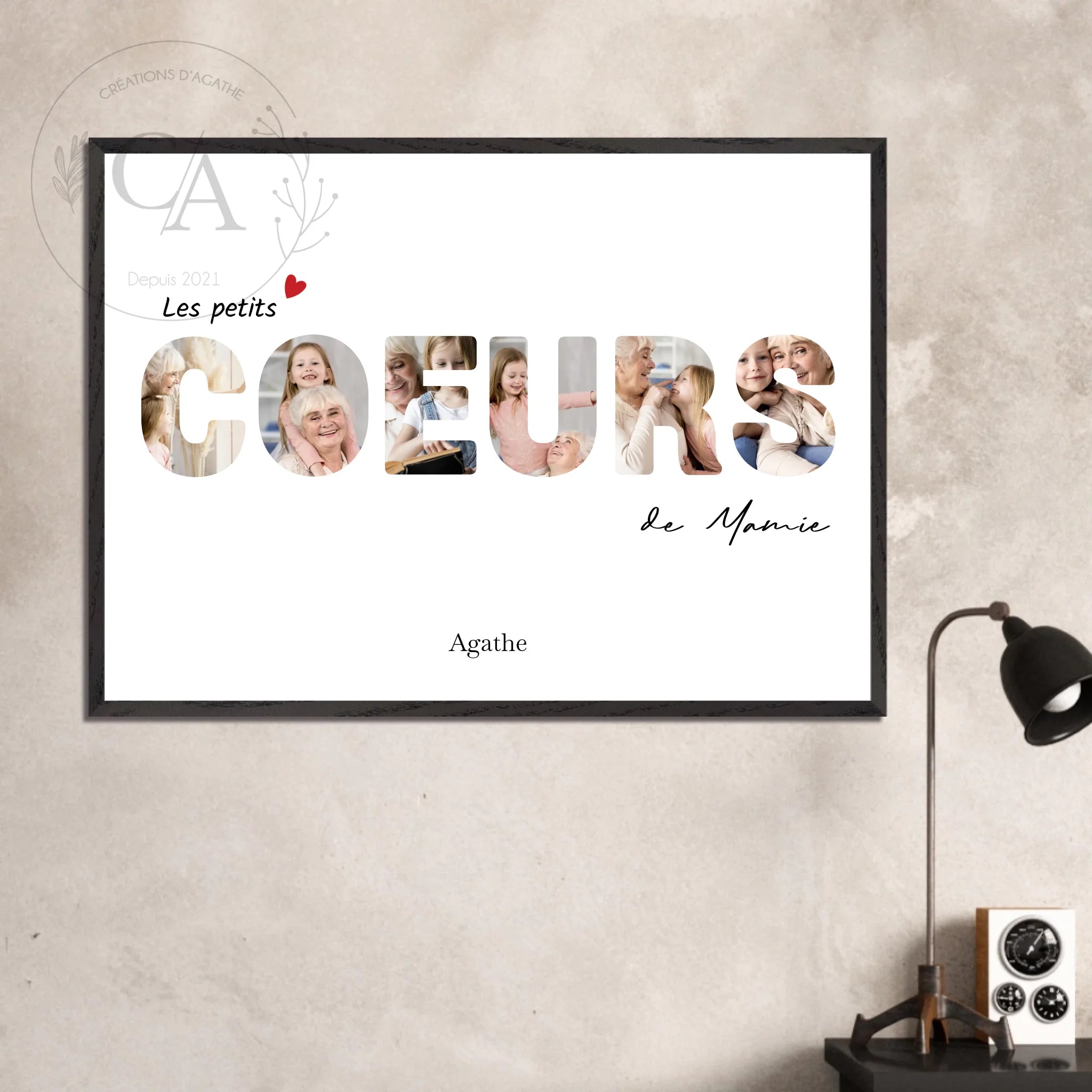 Chez Créations d'Agathe, découvrez des cadeaux personnalisés uniques, parfaits pour toutes les occasions. De magnifiques affiches personnalisées photo aux tasses magiques personnalisées, chaque produit est conçu pour immortaliser vos souvenirs ou ajouter une touche personnelle à votre intérieur.